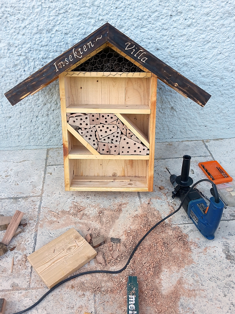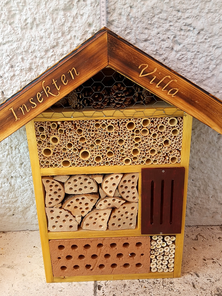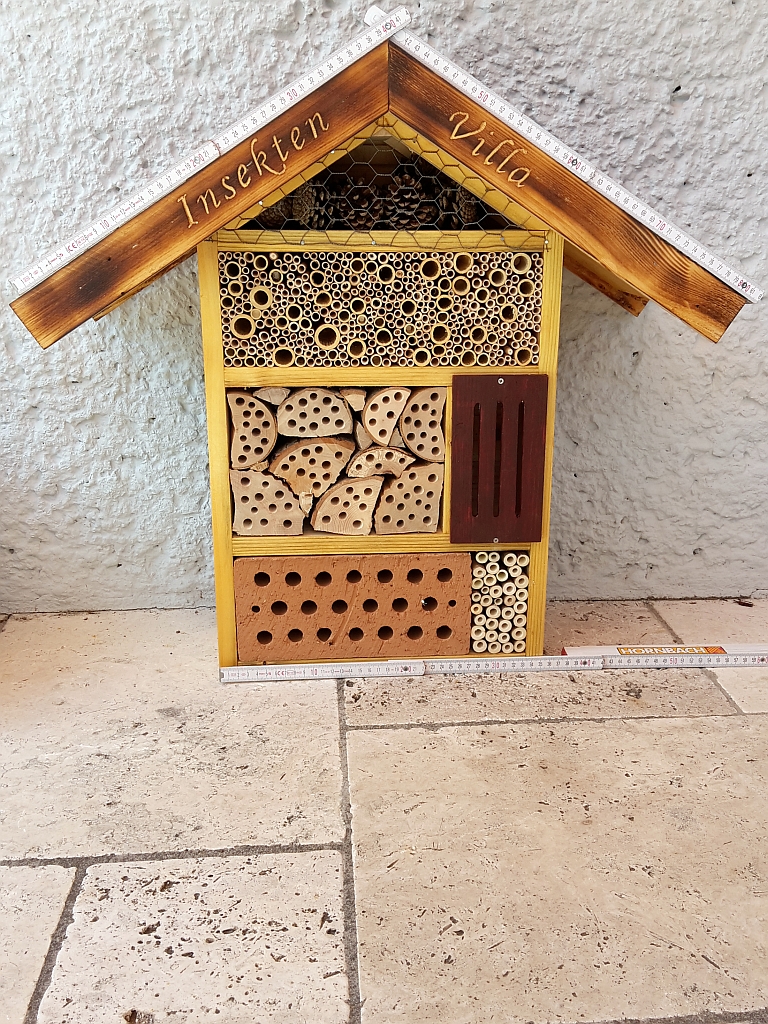 Ein sehr wichtiges Projekt für mich ist die Insektenvilla. Ein 5-Sterne Hotel für Wildbienen mit hunderten freien Zimmern ist es geworden.