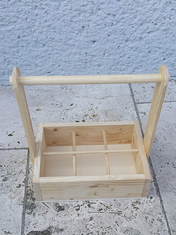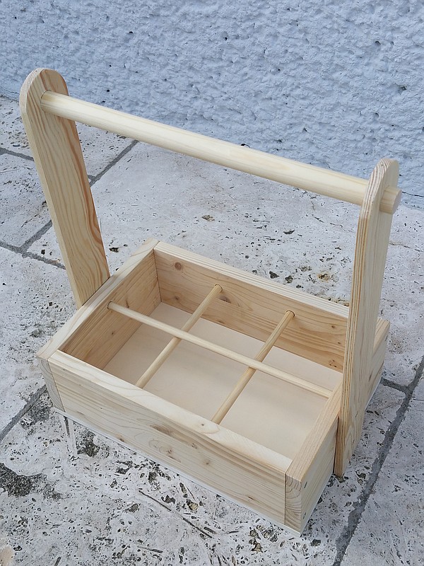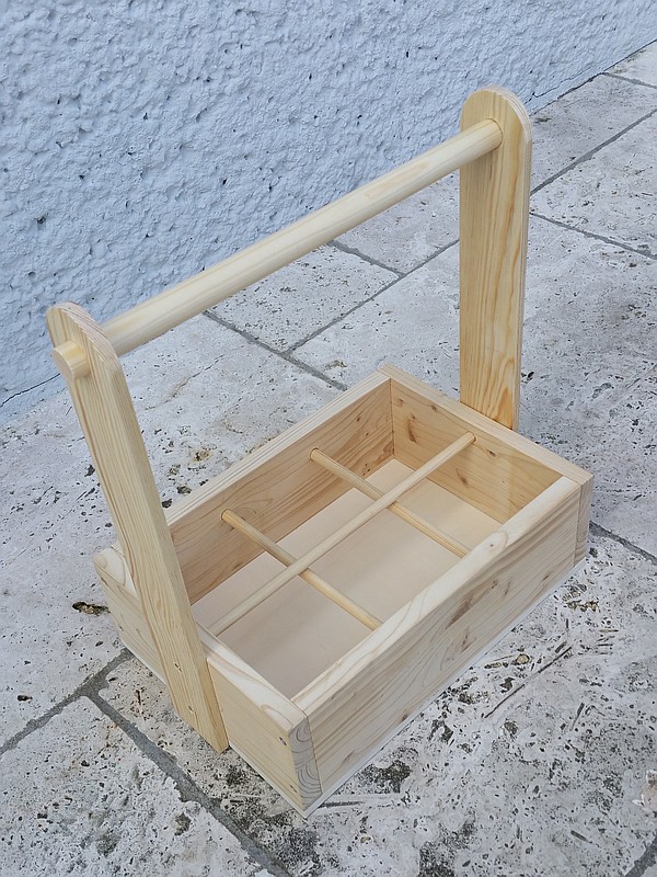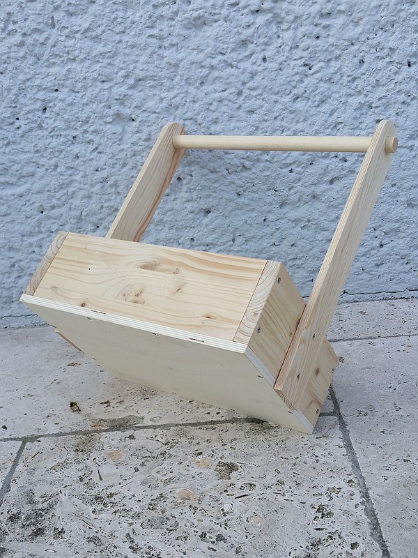 Das Holz ist unbehandelt. Die Maße über alles betragen ca. 364 x 226 x 390 mm (L x B x H)